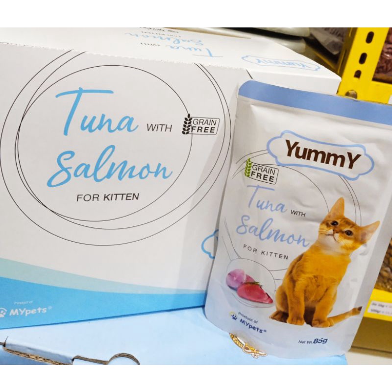 makanan kucing yummy sachet tuna with salmon for kitten 85 gram