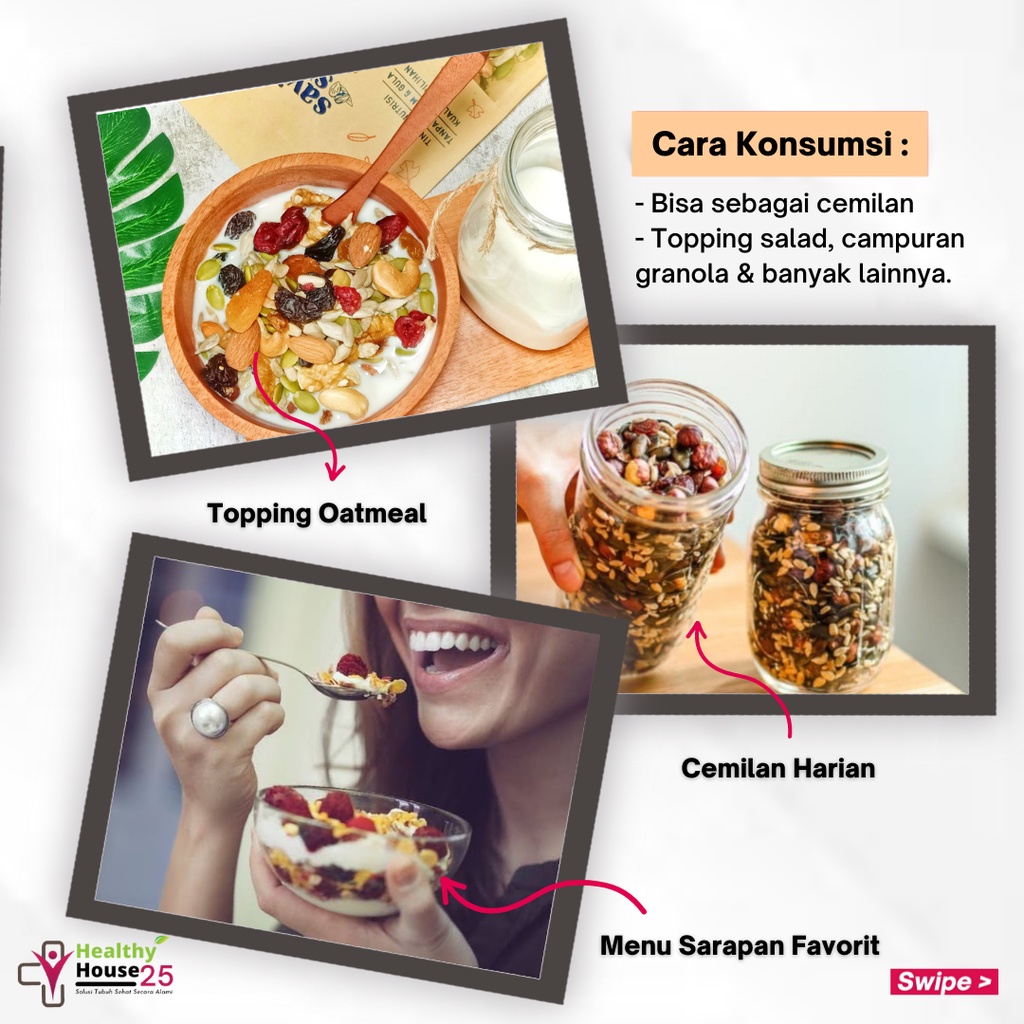 Makanan Sehat Untuk Sakit Lambung, Cemilan Khusus Penderita Maag Asam Lambung/Gerd Obat Alami - Savior Snack - Mix Nuts & Fruits Dried Organic Kacang-Kacangan Buah-Buahan Biji-Bijian Kering Siap Makan, Bebas Gula & Garam