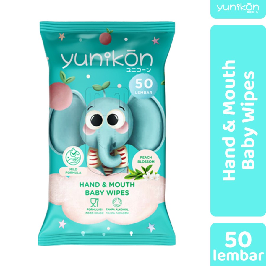 Yunikon Hand & Mouth Baby Wipe tisu basah untuk membersihkan area mulut dan tangan, dapat juga digunakan pada alat makan, dot, botol bayi dan mainan anak. Dengan harum Peach Blossom yang menyegarkan.