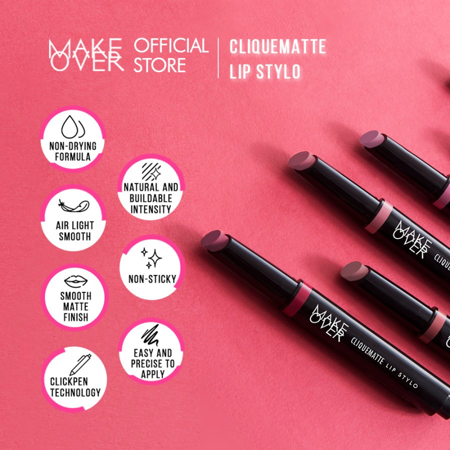 Detail MAKE OVER Cliquematte Lip Stylo Indonesia / Lipstick Matte 2g / Non Drying Formula Airlight Smooth Matte Finish / Natural Buildable Intensity Non Sticky Easy Precise To Aply / 201 202 203 204 205 206 207 208 209 210 / Cosmetic Makeup Lips Make Up Series