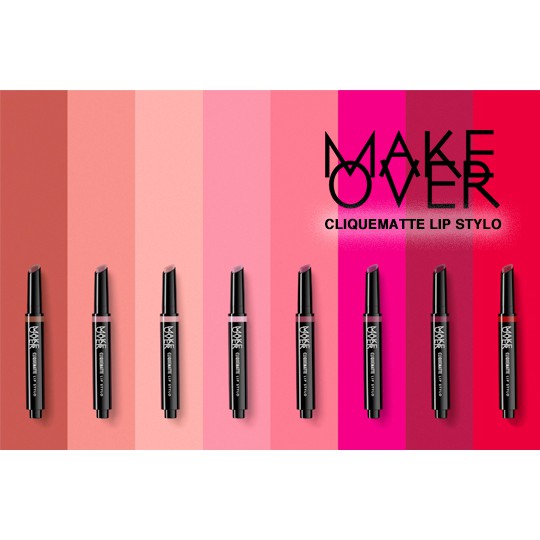 Make Over Cliquematte Lip Stylo merupakan comfortable matte lipstick yang memberikan hasil akhir matte namun tetap lembut dan ringan saat dioleskan, serta dapat melembabkan bibir. Berbeda dari lipstick batang pada umumnya, packaging Make Over Cliquematte Lip Stylo menggunakan mekanisme clickpen, didesain khusus untuk memberikan kemudahan kepada penggunanya agar dapat mengontrol banyaknya lipstick yang ingin dikeluarkan sehingga dapat menghindari lipstick patah serta melindungi produk agar tetap higienis. Hasil akhir matte namun tetap nyaman digunakan.