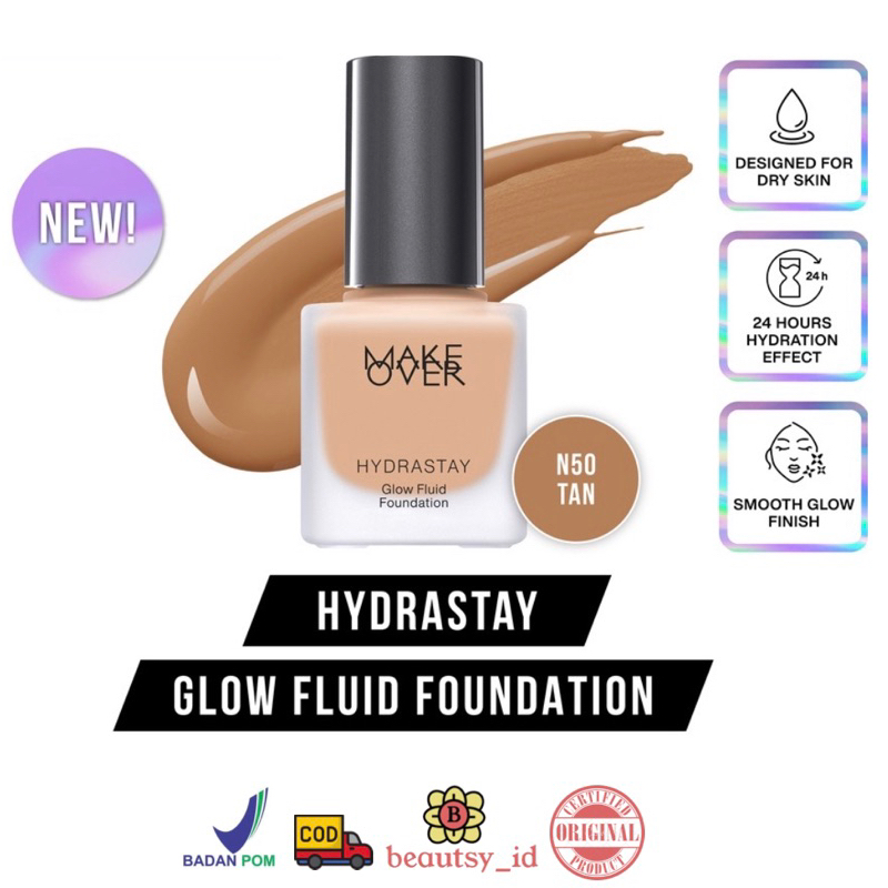Detail Make Over Hydrastay Glow Fluid Foundation N50 Tan 35ml Original BPOM COD