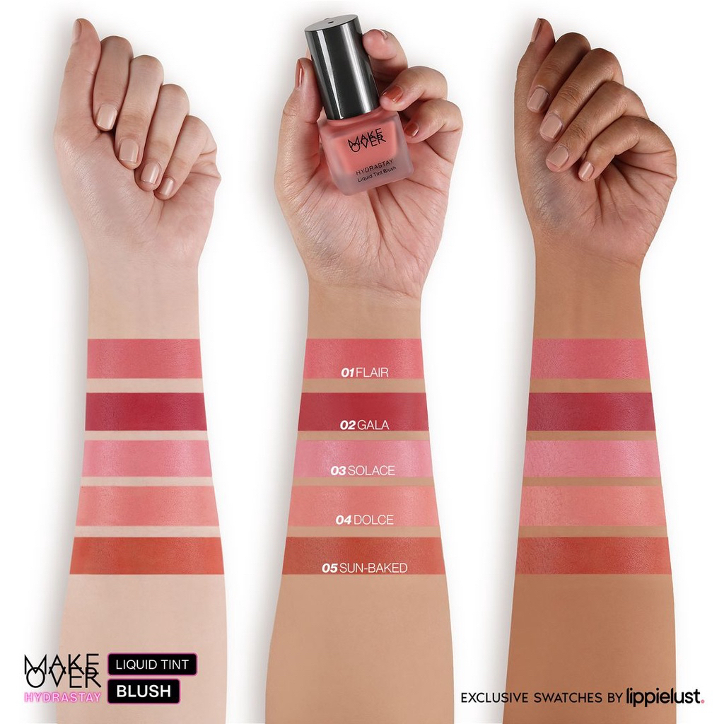 Detail MAKE OVER Hydrastay Liquid Tint Blush Indonesia / Liquid Blush On 15ml / Lasting Deep Hydration Soft Seamless Finish Natural Flush / Long Lasting Color Pigment Perfectly Attached On Skin Intense Buildable Color / Series Glow Foundation Cushion Powder Lip
