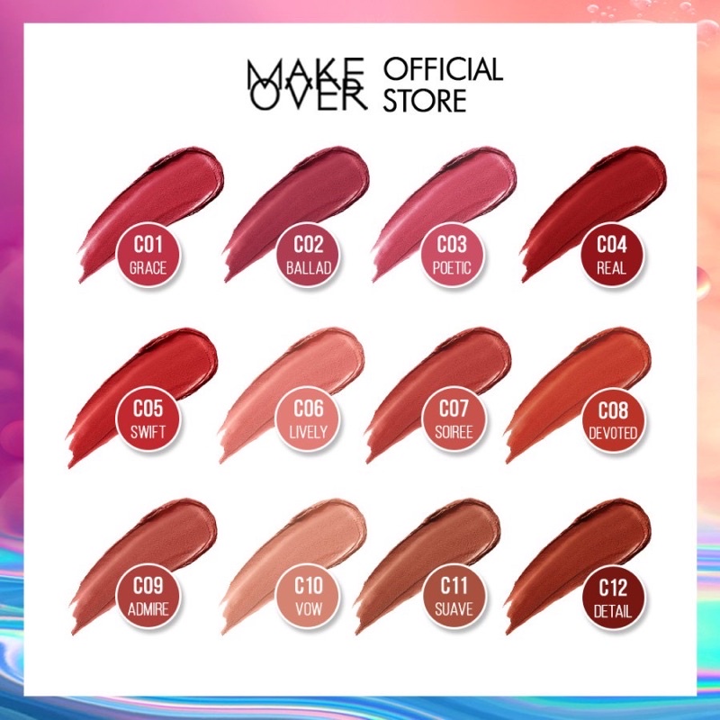 MAKE OVER Hydrastay Smooth Lip Whip is a whipped matte lip cream infused with Deep Hydrating Actives specifically designed for dry lips to hydrate and blur cracks on lips. Its weightless velvety-texture glides smoothly resulting a true healthy smooth matte finish, even on chapped lips. Provided with 12 intense enchanting colors, it suits various diverse skin tone.