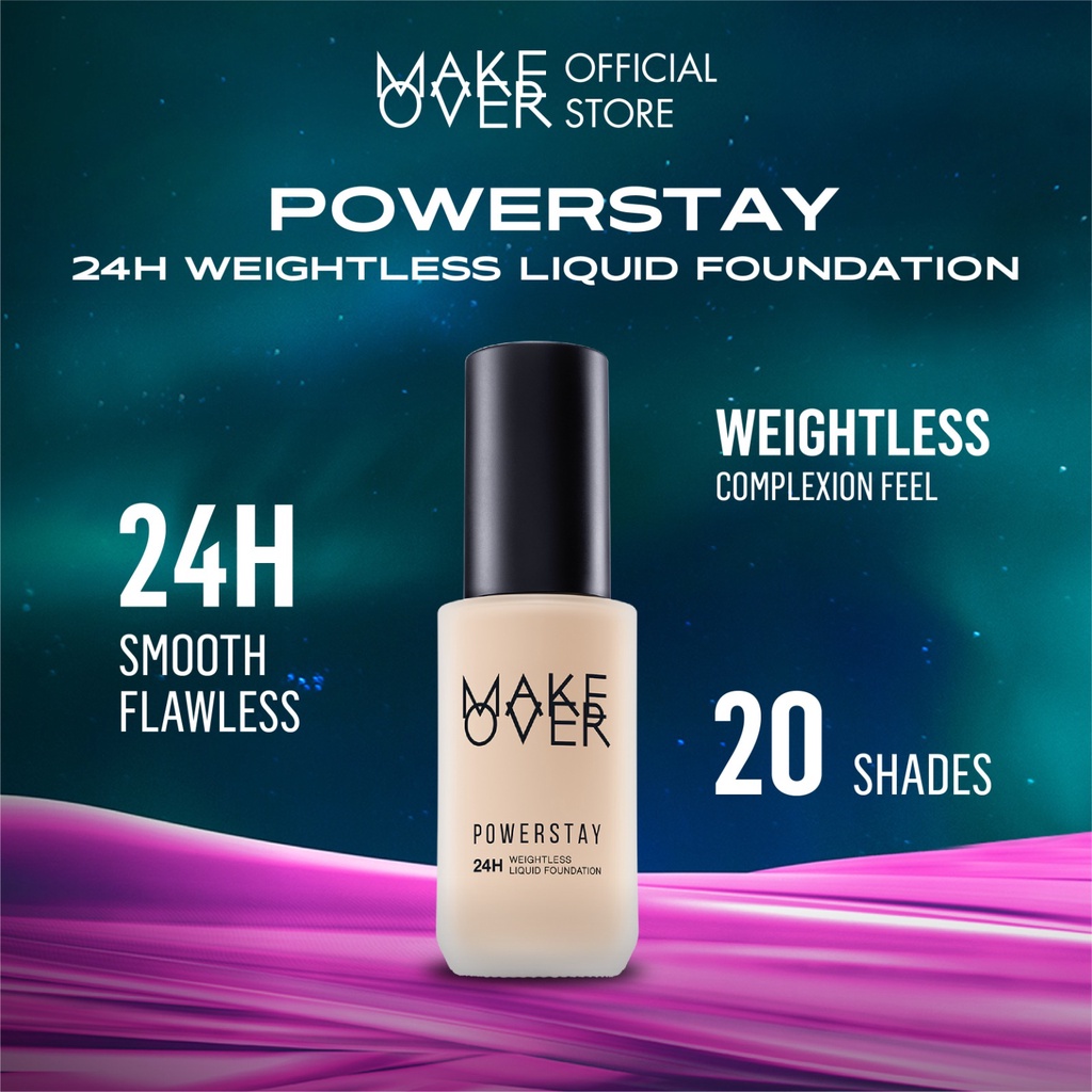 Make Over Pink Eye and Flawless Base : Powerstay Weightless Liquid Foundation, Powerstay Royal Rose Eye Palette Berisi : - MAKE OVER Powerstay 24H Weightless Liquid Foundation - MAKE OVER Powerstay Royal Rose Eye Palette 12 x 0.4 g