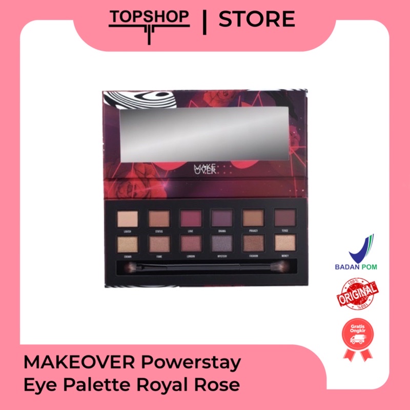 Make Over Powerstay Eye Pallete Royal Rose Eyeshadow yang tahan lama tersedia dalam 12 pilihan warna menarik dalam satu kemasan yang memberikan efek multi dimensi dalam tampilan matte, shimmer, dan glitter. Semua warna didesain untuk bisa dikombinasikan satu sama lain agar memberikan kebebasan dalam menciptakan berbagai tampilan. Diformulasikan dengan menggunakan high-impact colors yang memberikan intensitas warna yang tinggi dalam satu kali usapan. Sekaligus memiliki tekstur creamy yang mudah dibaurkan untuk menghasilan tampilan yang natural. Kandungan micronized pigment powder dikombinasikan dengan ultra-fine pearl dan glittering metallics menghasilkan kulauan yang merefleksikan cahaya dengan baik untuk tampilan mata yang menarik.