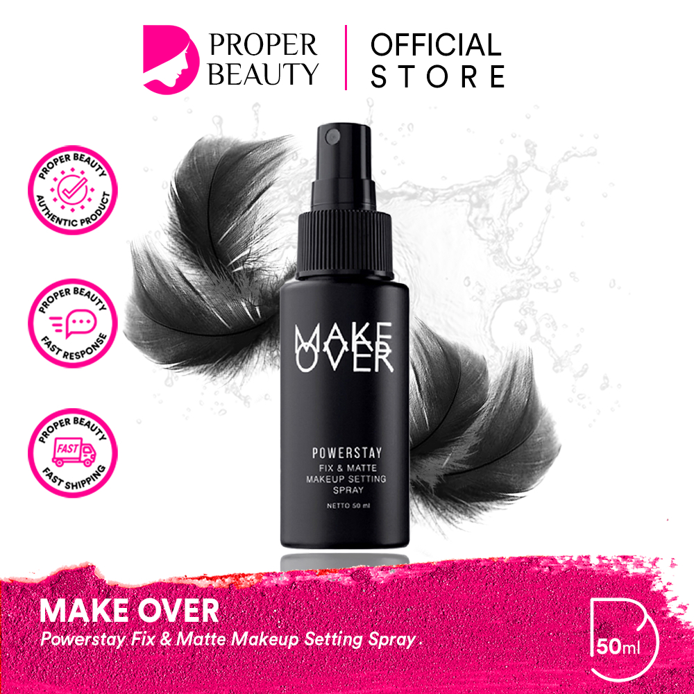 Perawatan & Kecantikan > Kosmetik Wajah > Setting & Finishing Spray > MAKE OVER Powerstay Fix & Matte Makeup Setting Spray Indonesia / Setting Spray 50ml / Pro Long Make Up To 4H Quick Absorbtion Instant Matte Finish / Tahan Lama Melembabkan / Makeup Cosmetic Face Make Up Kosmetik Wajah Muka / Makeover Power Stay Series