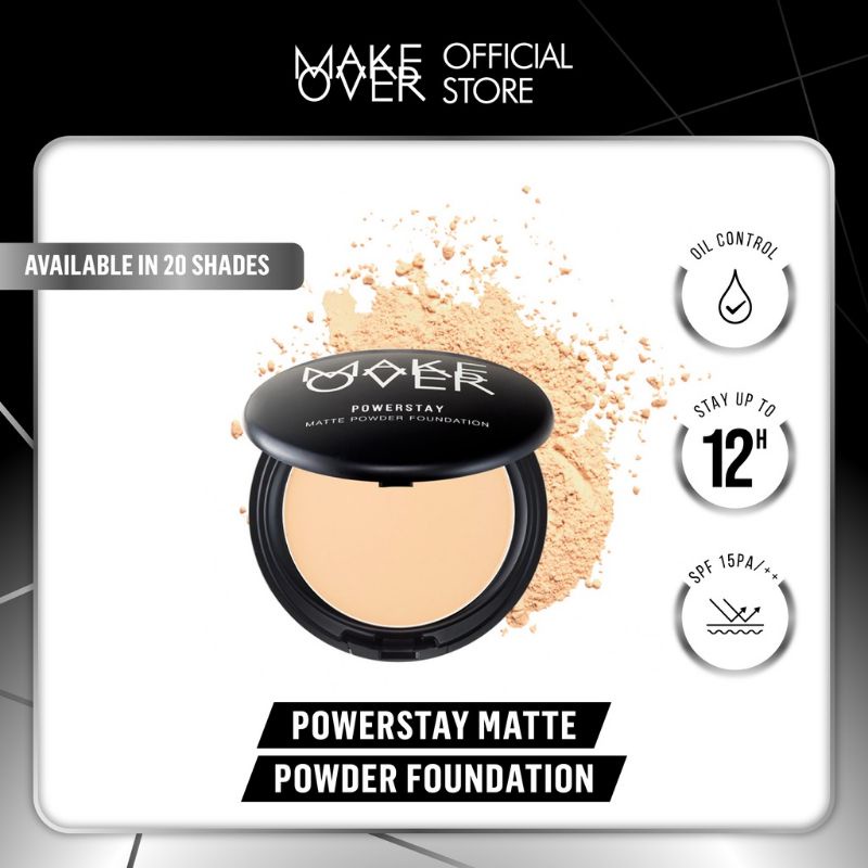 Make Over Powerstay Matte Powder Foundation merupakan bedak padat dengan kandungan foundation untuk hasil makeup yang matte namun tidak flat, hasil tahan lama dan tetap terasa nyaman digunakan karena ringan serta menyatu dengan kulit. Diformulasikan dengan Microfine Color-Rich Pigment Technology dan Fade-Resistant Formula untuk menghasilkan warna yang merata dan menyatu dengan kulit, dilengkapi dengan perlindungan SPF 15 PA++ untuk melindungi kulit dari paparan sinar UVA/UVB. Disertai juga dengan soft focus agent untuk menyamarkan pori dan garis-garis halus di wajah sehingga kulit tampak lebih halus dan terlihat sempurna. Bedak ini memiliki medium buildable coverage, dimana coverage dapat disesuaikan mulai dari medium hingga full....