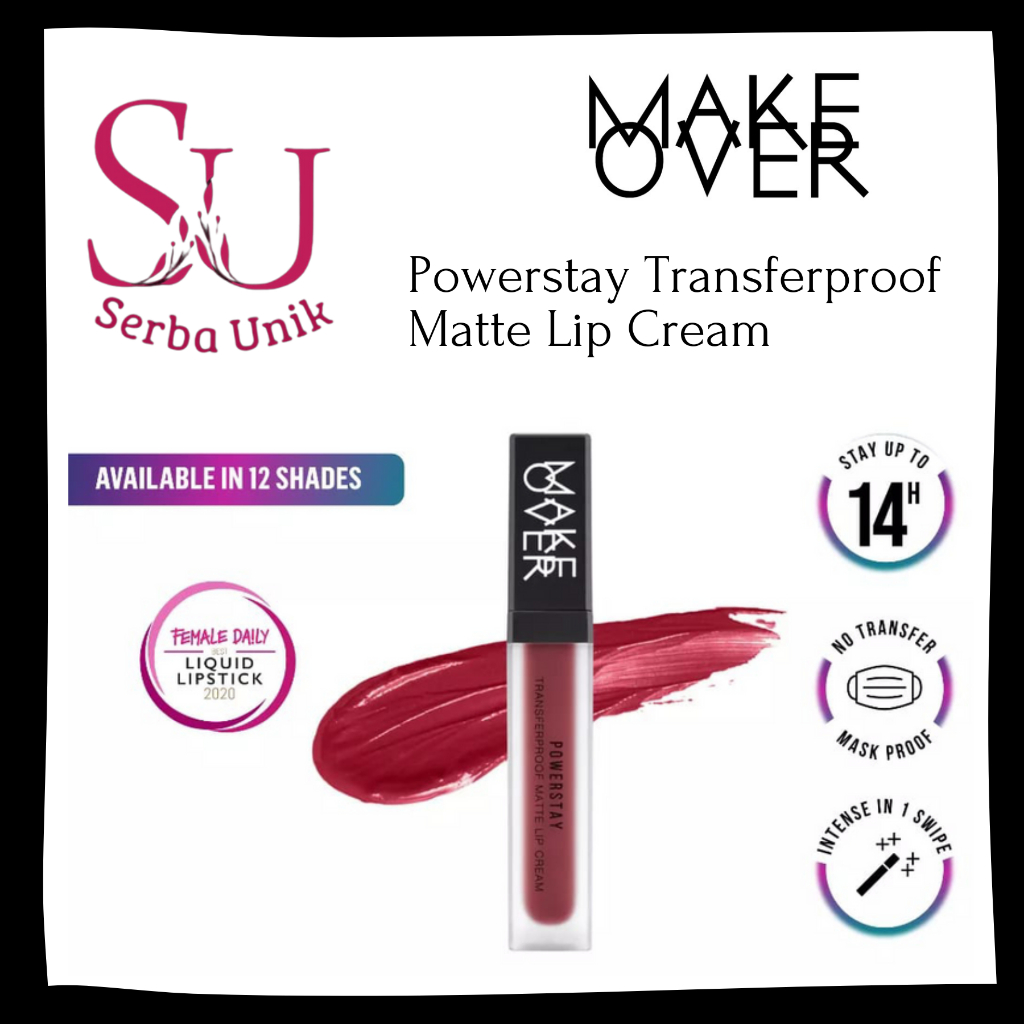 Make Over Powerstay Transferproof Matte Lip Cream adalah lip cream tahan lama, yang kuat dan ringan dan bertahan hingga 14 jam. Dikembangkan dengan Teknologi 3D-PigmentLock dan formula Transferproof tahan transfer, sehingga tidak perlu diaplikasikan berkali-kali!