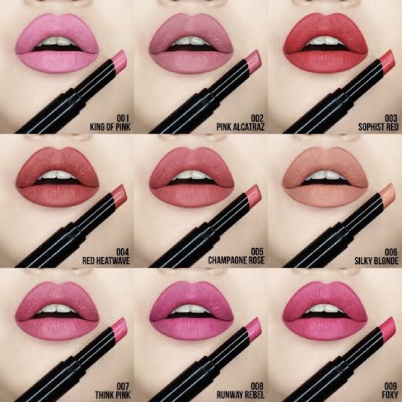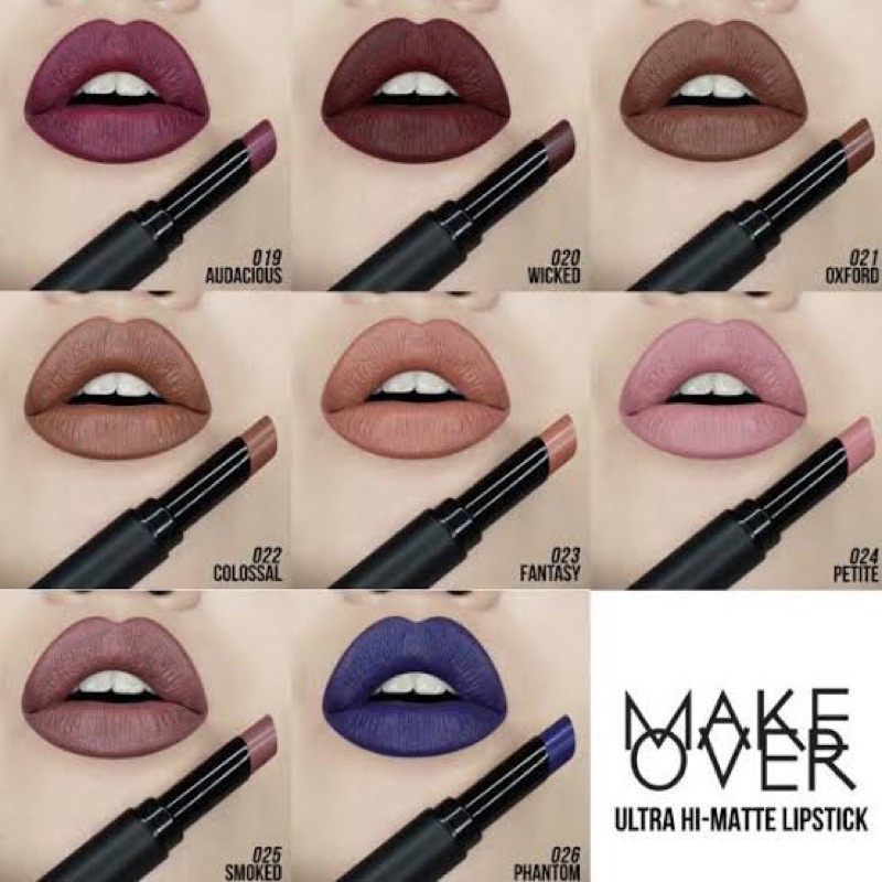Deskripsi: Make Over Ultra Hi-Matte Lipstik merupakan lipstick matte dengan intensitas warna tinggi dan beragam yang tahan lama ketika digunakan namun tidak membuat bibir kering.