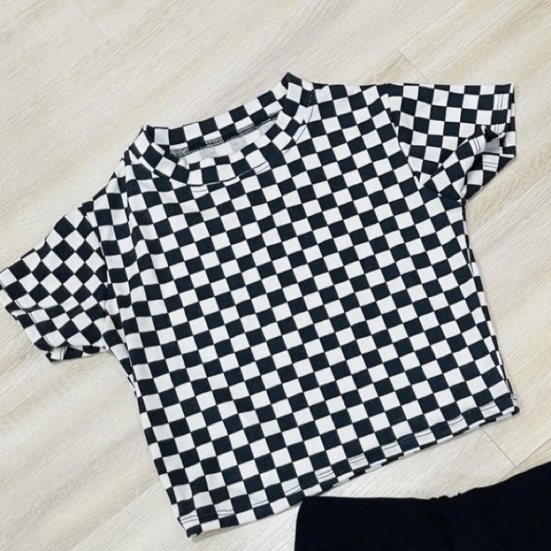 Detail MakeGrosir - CROP TOP RIB CHECKER MOTIF CATUR