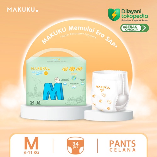 Keunggulan: 1. Anti Gumpal / Anti-clumping (With New Generation SAP Core Structure Pertama di Indonesia) SAP adalah polymer hidrophilik yang memiliki kemampuan dapat menyerap cairan hingga lebih dari 100x lipat dari berat SAP sendiri. Penyerapan merata dan strukturnya sangat stabil sehingga tidak menggumpal dan jatuh, membuat bayi tidak merasa berat saat bergerak. Dengan adanya bahan SAP ini maka terdapat 3 manfaat dari Popok MAKUKU : - Tidak Menggumpal, sehingga membuat bayi lebih nyaman - Penyerapan Merata, sehingga mengurangi kebocoran - Daya serap yang tinggi dan cepat, sehingga menjaga permukaan tetap kering dan mampu secara efektif mengurangi ruam merah pada kulit bayi.