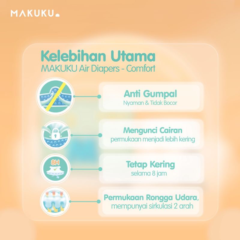 Detail produk: Brand : MAKUKU Series : MAKUKU Air Diapers Comfort+ Isi: 1 pack