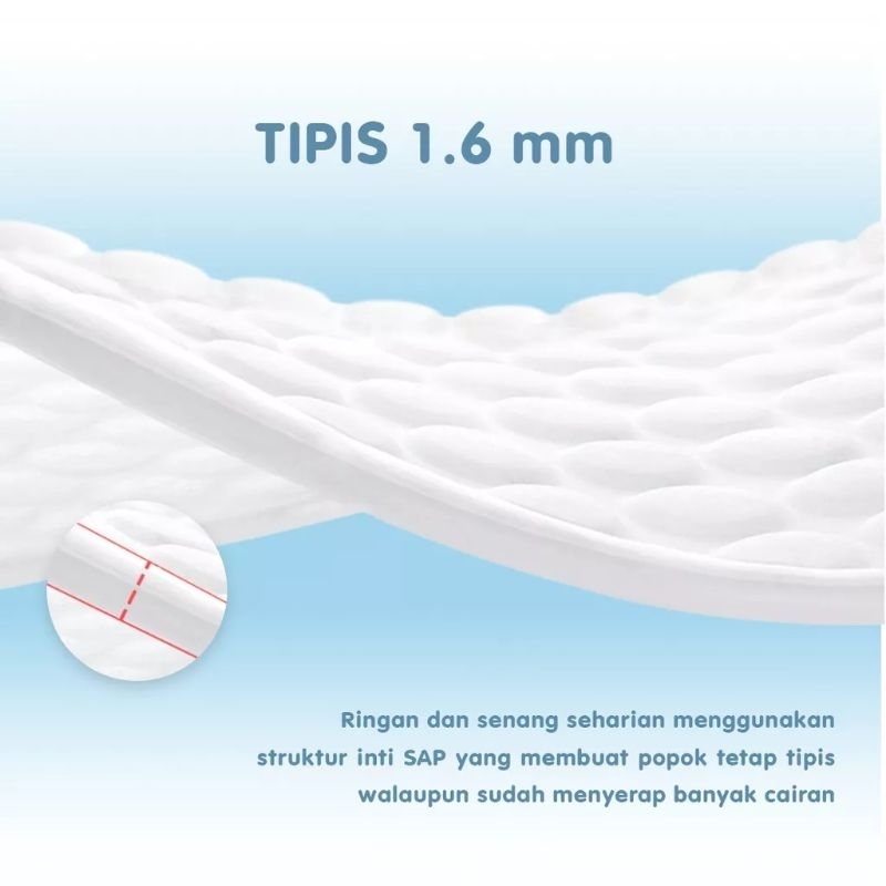 Popok New Generation SAP Core Structure Pertama di Indonesia, popok dengan teknologi generasi terbaru mempunyai struktur SAP sehingga tidak mudah menggumpal dan jatuh, serta membuat bayi tidak merasa berat saat bergerak