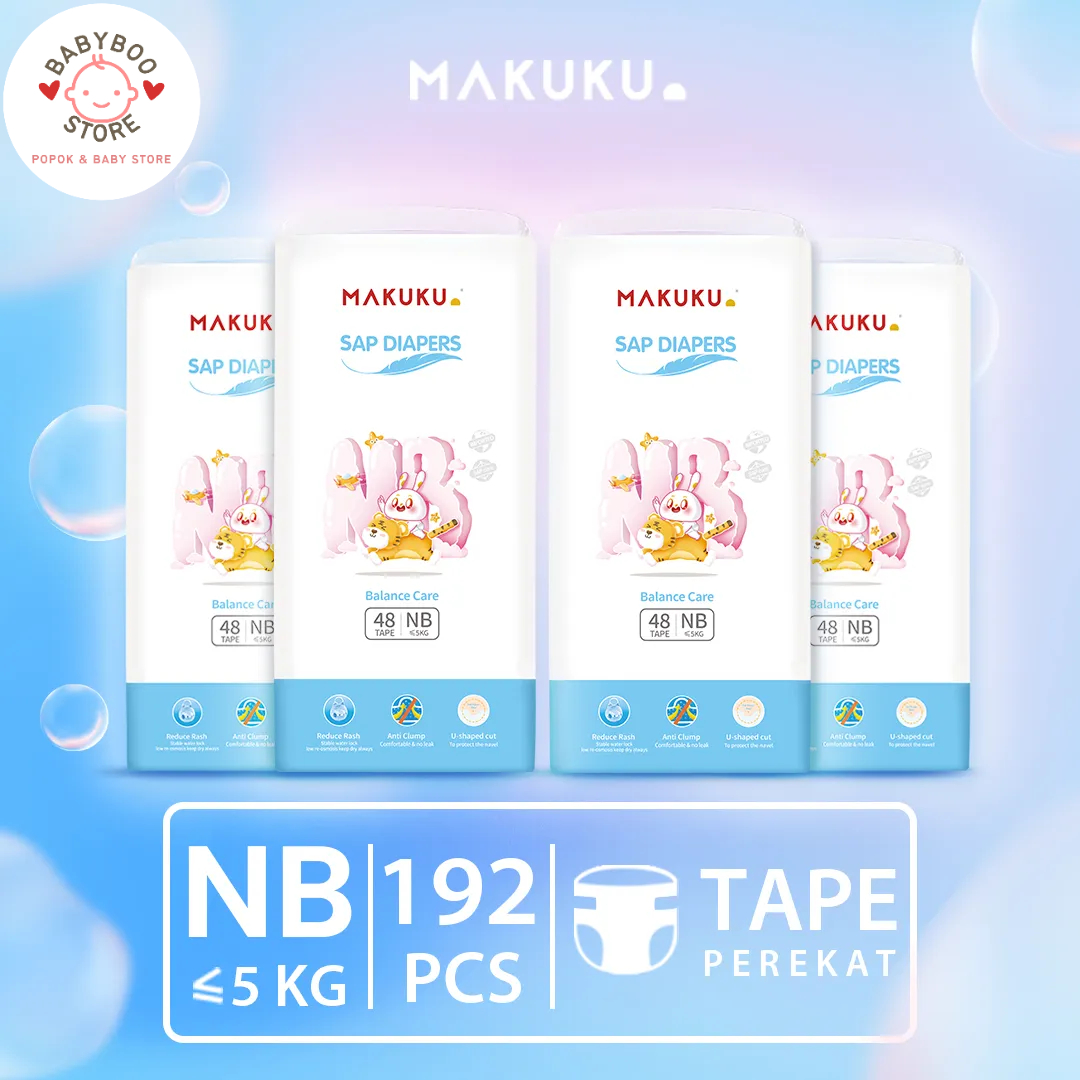 DETAIL PRODUK: Brand : MAKUKU Product Type : SAP DIAPERS - BALANCE CARE Size : NB Rekomendasi Berat Bayi: Cek Size Chart pada Gambar Produk Isi: 4 pack 48 pcs