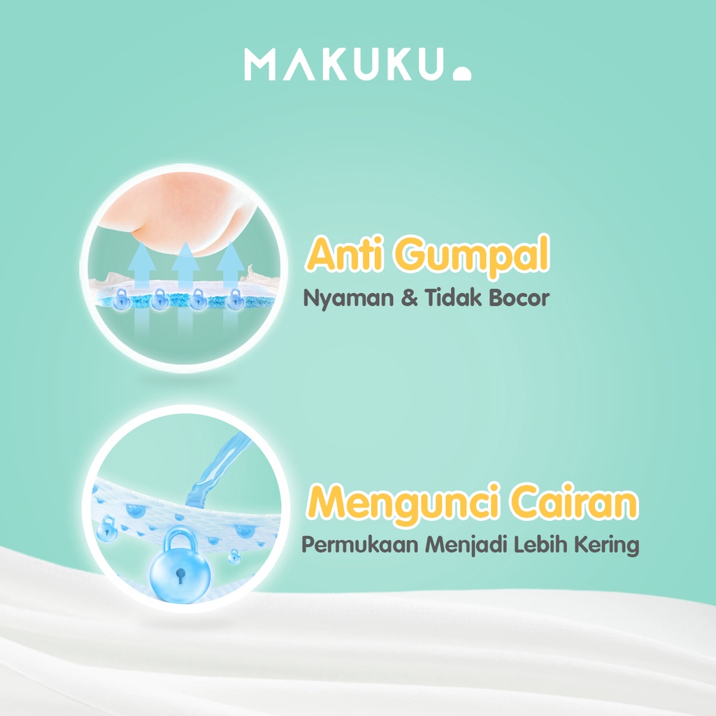 Popok New Generation SAP Core Structure Pertama di Indonesia, popok generasi terbaru dengan struktur yang stabil membuat popok Makuku tidak mudah menggumpal dan jatuh, serta membuat bayi tidak merasa berat saat bergerak. Penyerapan kecepatan tinggi membuat SAP yang masuk ke popok akan cepat diserap merata sehingga dapat melindungi pantat bayi dari iritasi.