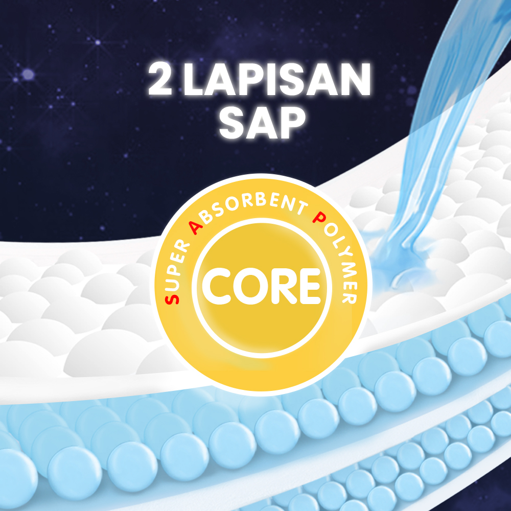 Menggunakan volume yang tipis namun penyerapannya maksimal, meningkatkan rasa nyaman dan tetap kering