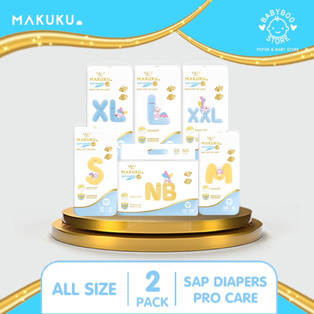Ibu & Bayi > Popok & Pispot > Popok Sekali Pakai > MAKUKU SAP Diapers Procare Tape NB/S/M/L/XL/XXL x 2 Pack Popok Perekat Premium Lembut Mencegah Ruam Dan Anti Gumpal