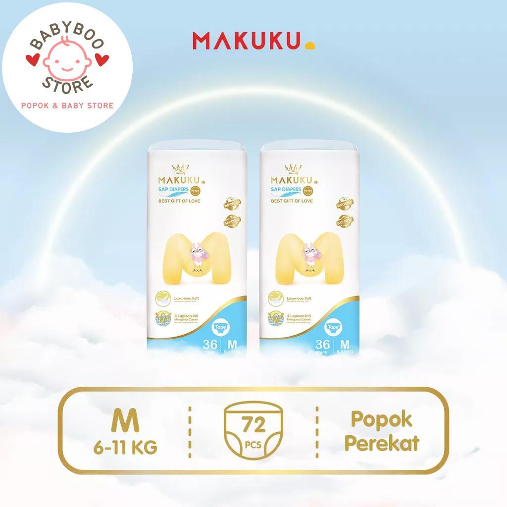 Popok New Generation SAP Core Structure Pertama di Indonesia, popok generasi terbaru dengan struktur yang stabil membuat popok Makuku tidak mudah menggumpal dan jatuh, serta membuat bayi tidak merasa berat saat bergerak. Penyerapan kecepatan tinggi membuat cepat diserap merata sehingga dapat melindungi pantat bayi dari iritasi.