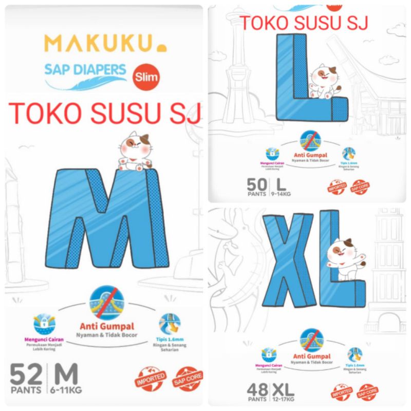 MAKUKU SAP DIAPERS SLIM Super jumbo PANTS CELANA M 52 L 50 XL 48/M52/L50/XL48MAKUKU SAP DIAPERS SLIM Super jumbo PANTS CELANA M 52 L 50 XL 48/M52/L50/XL48
