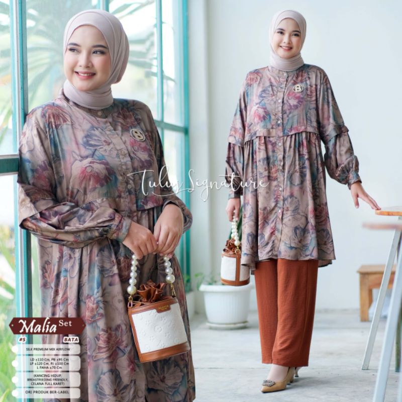 MALIA SET #5 BY TULUS SIGNATURE / ONESET MOTIF MUSLIMAH / Setelan celana silk mix airflow
