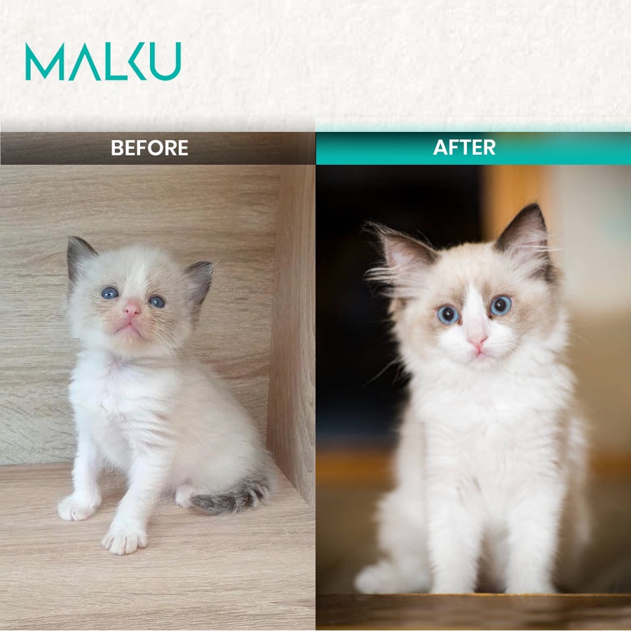 Manfaat MALKU Maximize Kitten Growth: 1. Melebatkan bulu kitten 2. Meningkatkan imunitas kitten 3. Mengurangi bulu rontok kitten 4. Dukung kitten tumbuh besar alami 5. Memaksimalkan pertumbuhan kitten