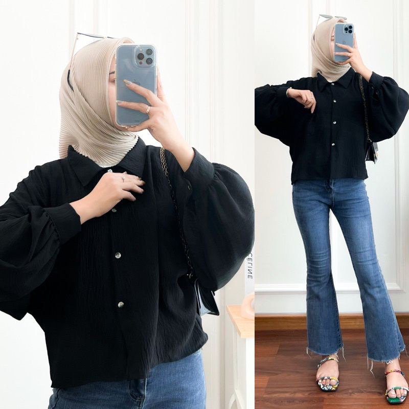 MALVINA BLOUSE CRINKLE AIRFLOW TERBARU••Atasan Kemeja Lengan Balon Wanita Terbaru