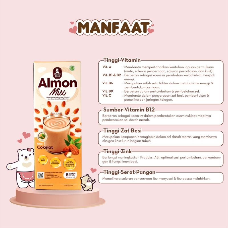 MamaBear AlmonMix + Daun Katuk (Rasa Coklat) Memberi segala kebaikan untuk Mama selama masa menyusui dengan : ✅ SUPERFOOD meningkatkan produksi & nutrisi ASI ✅ ASI cepat keluar setelah melahirkan ✅ MAKRO & MIKRONUTRISI lengkap untuk Mama ✅ VIT A, B1, B2, B6, B9, B12, C, Zat Besi, Zink ✅ SUMBER Kalsium kepadatan tulang selama menyusui ✅ BEBAS LAKTOSA