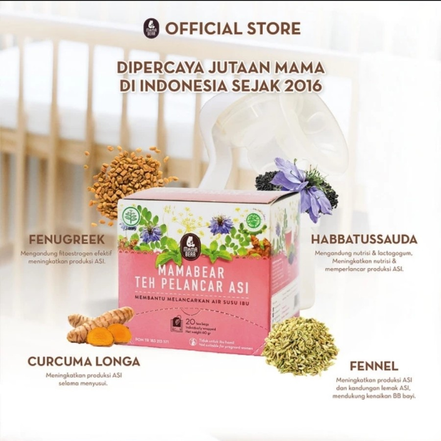 Mama Bear juga sudah mengantongi ijin PIRT 310351801263-20 dengan komposisi: Trigonella Foenum-graecum seed Foeniculum Vulgare seed Pempinella Anisum seed Nigella Sativa seed ( Habattussauda) Stevia Rebaudiana leaf Curcuma Zanthorrhiza root, Curcuma Longa root Zingiber offcinale