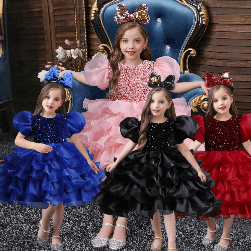 Dress pesta import bahan satin dan tulle Dres lengan pendek dan tangan balon Dibagian dada dress terdapat payet yang dijahit sehingga tidak mudah lepas Pada bagian belakang terdapat resleting Dan terdapat tali pinggang sehingga bisa disesuaikan dengan badan anak Motif rok layer tutu dan terdapat furing, tile kaku, sehingga rok mengembang Harga sudah termasuk bando Sangat terlihat mewah dan cocok digunakan untuk pesta ulang tahun