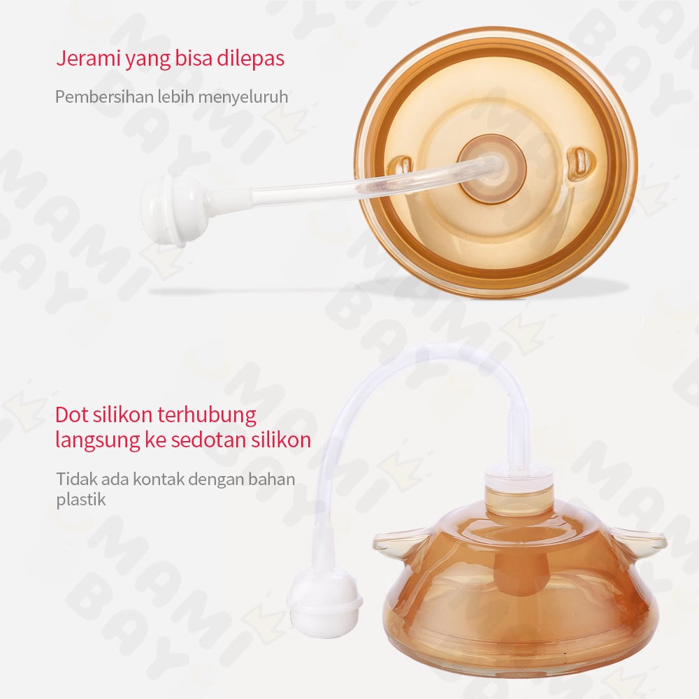Detail Mamibayi Dot piko bello dot bayi cokelat BPA free dot leher lebar dengan sedotan