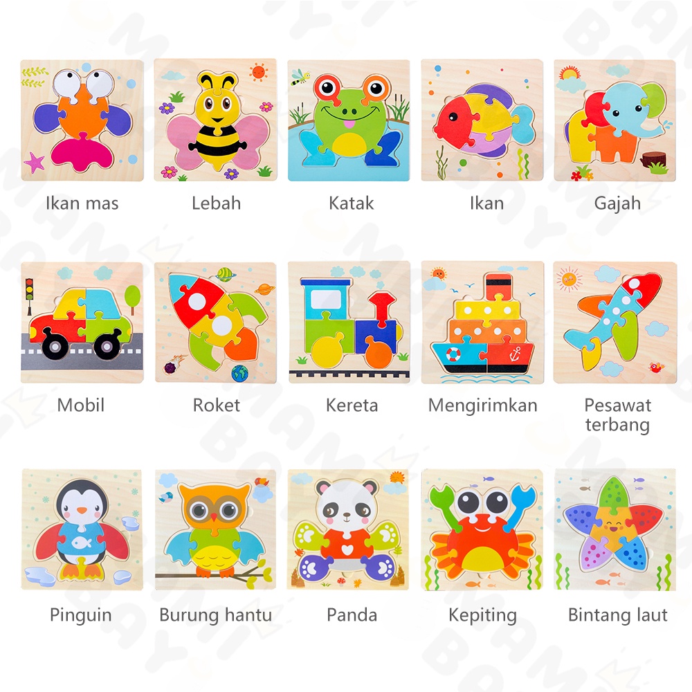 Detail Mamibayi Puzzle kayu hewan mainan edukasi anak puzzle transportasi wooden toys