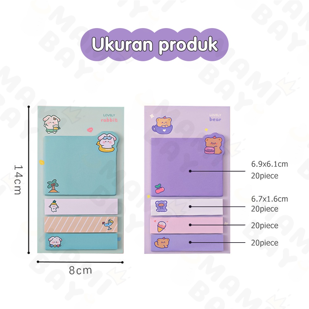 Detail Mamibayi Sticky Notes Pembatas Buku Lucu Motif Hewan 4 Baris