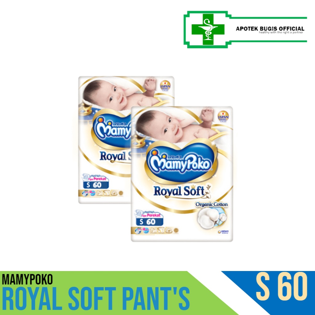 MamyPoko Perekat Royal Soft Organic Cotton Size S 60 - Popok Tape Extrasoft