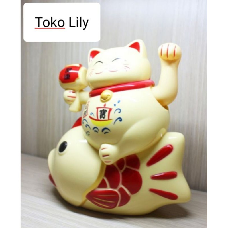 Patung Kucing Hoki Ikan Lucky Cat Maneki Neko Sangat cocok bagi anda yang anda yang suka mengkoleksi barang seperti ini