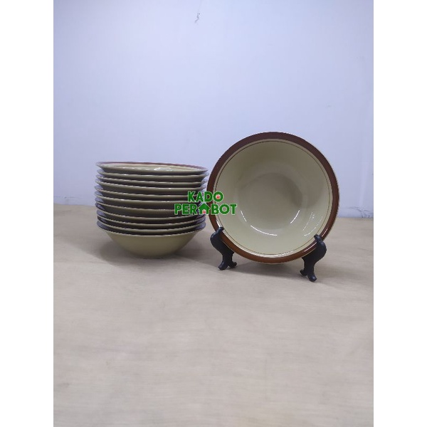mangkok keramik lis coklat lucky - mangkok kramik lucky - mangkok