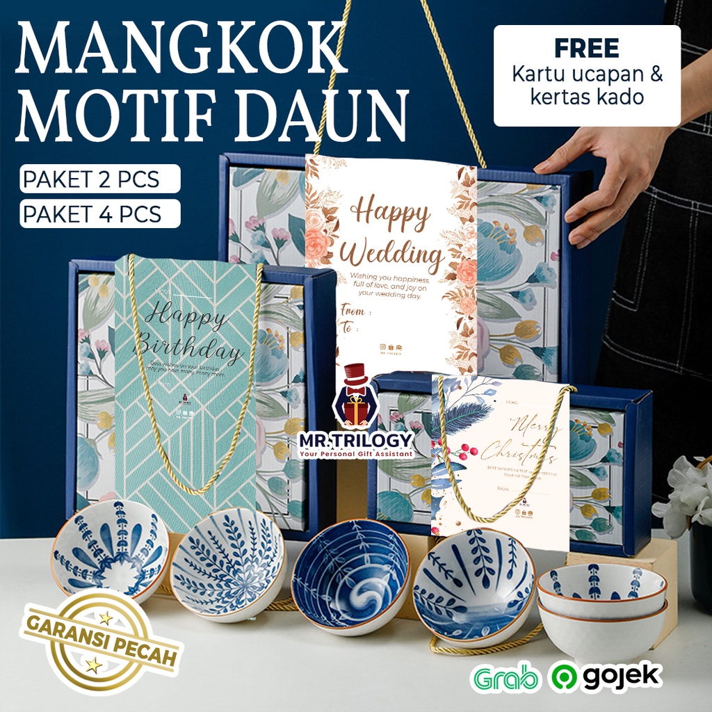 Mangkok Keramik Motif Daun Jepang Elegan Set Makan elegan Kekinian Estetik Hadiah Ulang Tahun Pernikahan Hampers Arisan Hari Raya