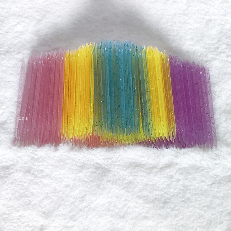 Nama: Tongkat Kuku Batang Kristal Panjang: 75mmmmmmmm Spesifikasi: 100 pcs/pack Ukuran Kemasan: 8*8*1 cm Berat Gram: 0.8g/stick, 80g/pack Fitur: Titik, Kepala Datar Serbaguna Warna: Pink, Golden Yellow, Blue, Ungu Cara Penggunaan: Bor Titik runcing, Potongan Kuku, Pembersihan Kepala Datar, Tekan Produk