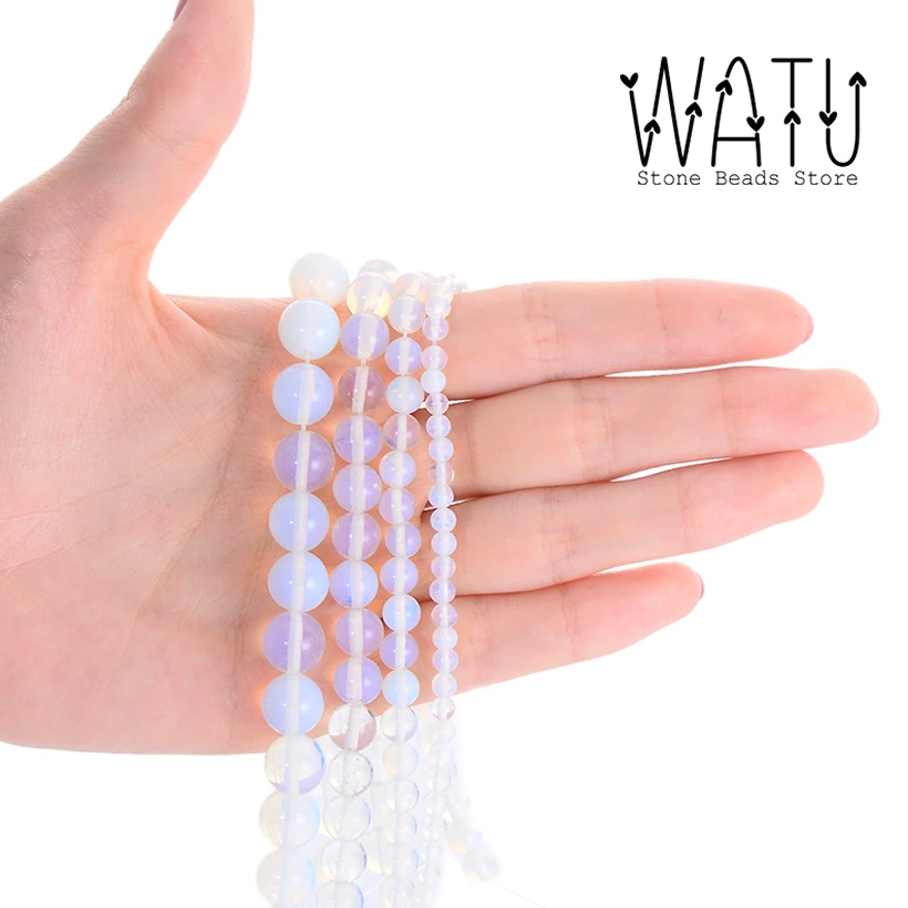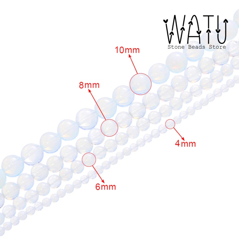 Manik Batu Opal Moonstone Warna Putih Ukuran 4mm, isi ± 90 butir Ukuran 6mm, isi ± 64 butir Ukuran 8mm, isi ± 48 butir Ukuran 10mm, isi ± 38 butir Ukuran 12mm, isi ± 32 butir