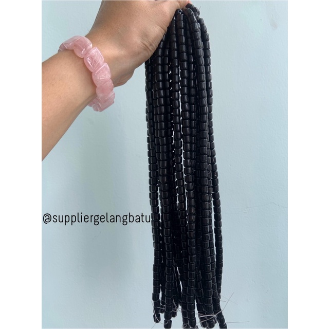 Detail manik batu tabung 8mm black onyx hitam glossy akik bahan gelang kalung