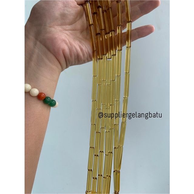 Detail manik glass bead yellow quartz 30 x 5mm bahan prakarya gelang kalung