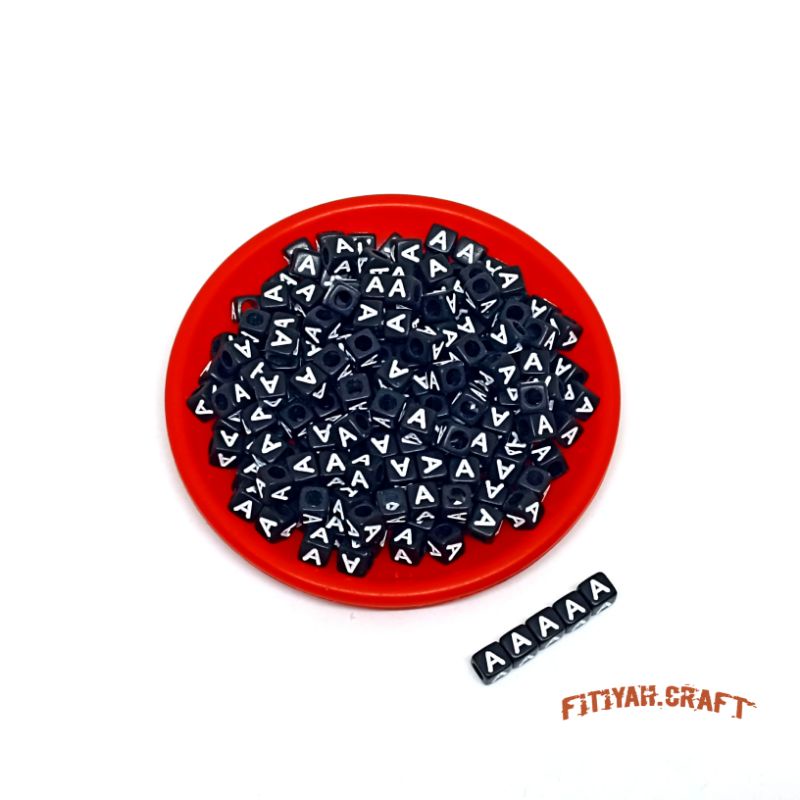 Detail Manik-manik Dadu Kotak Hitam Huruf Putih Aksesoris Craft