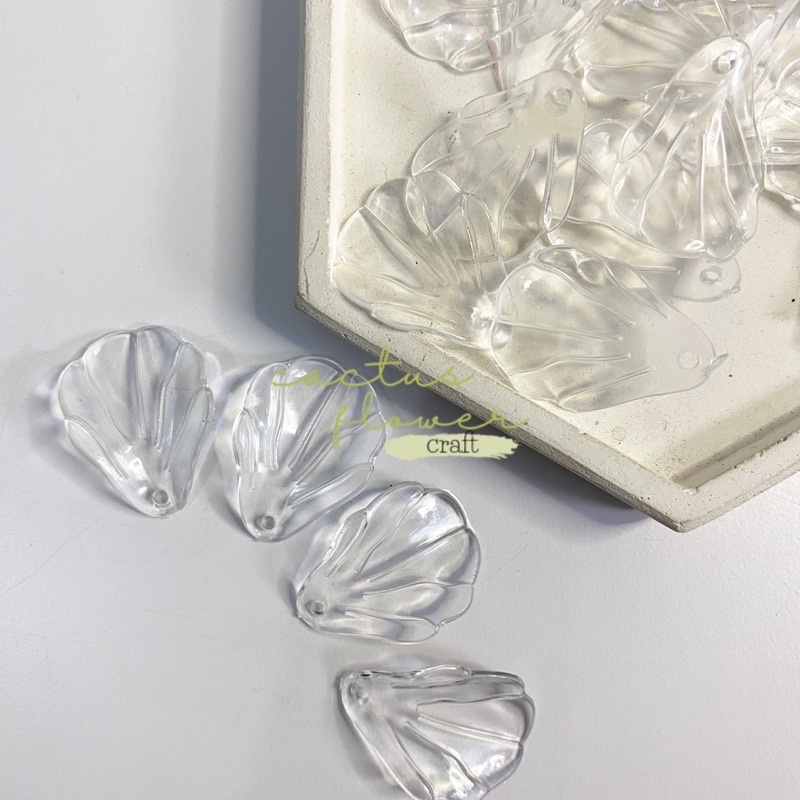Kelopak daun bening (tidak kilap) dengan serat garis. Ringan dan cocok dikombinasikan dgn berbagai jenis manik-manik bunga. . ukuran: 25mm Berat: 25gr Isi: 20-30pcs (beda warna beda berat)