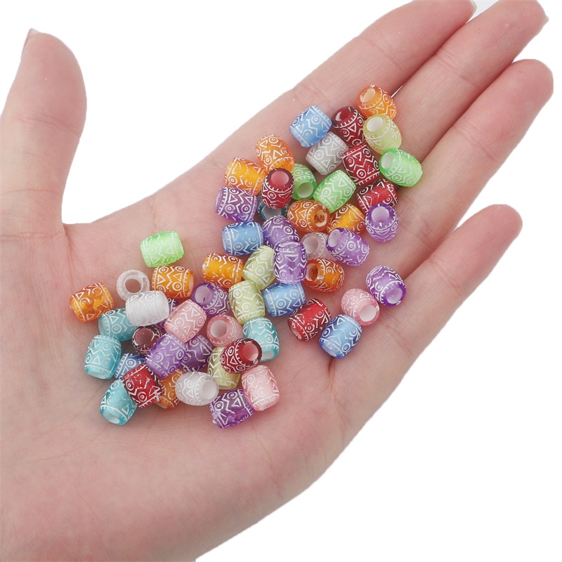 🌸Tipe Barang Manik-manik Silinder Cetak Timbul Akrilik 🥰Kondisi: 100% Baru 💓Bahan: Akrilik 🌈Warna: seperti gambar 🛒Berat: 31g ✨Ukuran: 7x9mm, ukuran lubang sekitar 4mm 🔥Jumlah Sekitar 115 pcs/tas 🔆Cocok: Untuk pembuatan perhiasan DIY