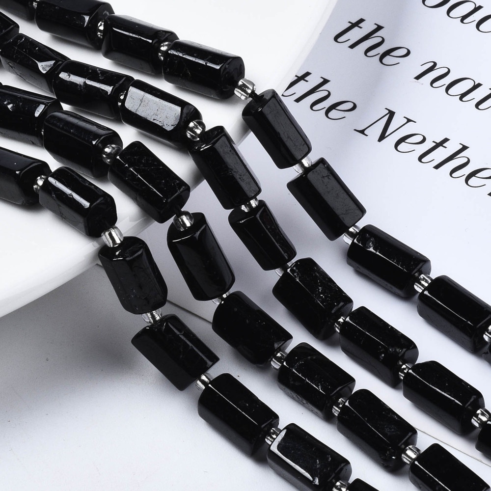 Untai Manik-manik Turmalin Alami, dengan Manik-manik Biji, Kolom Faceted,