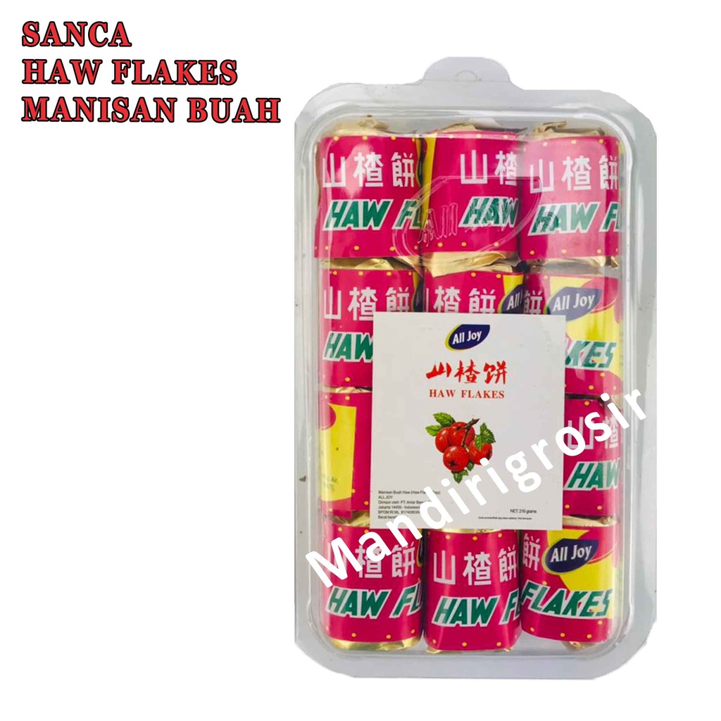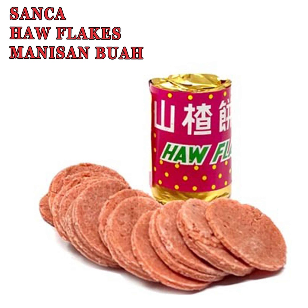 Seperti namanya, Haw Flakes adalah manisan yang terbuat dari buah Hawtorn. Buah ini adalah sejenis berry yang memiliki nama Tiongkok Shan Zha/Sanca. Sama seperti kepingan Haw Flakes, buah Sanca juga berasa manis agak asam.