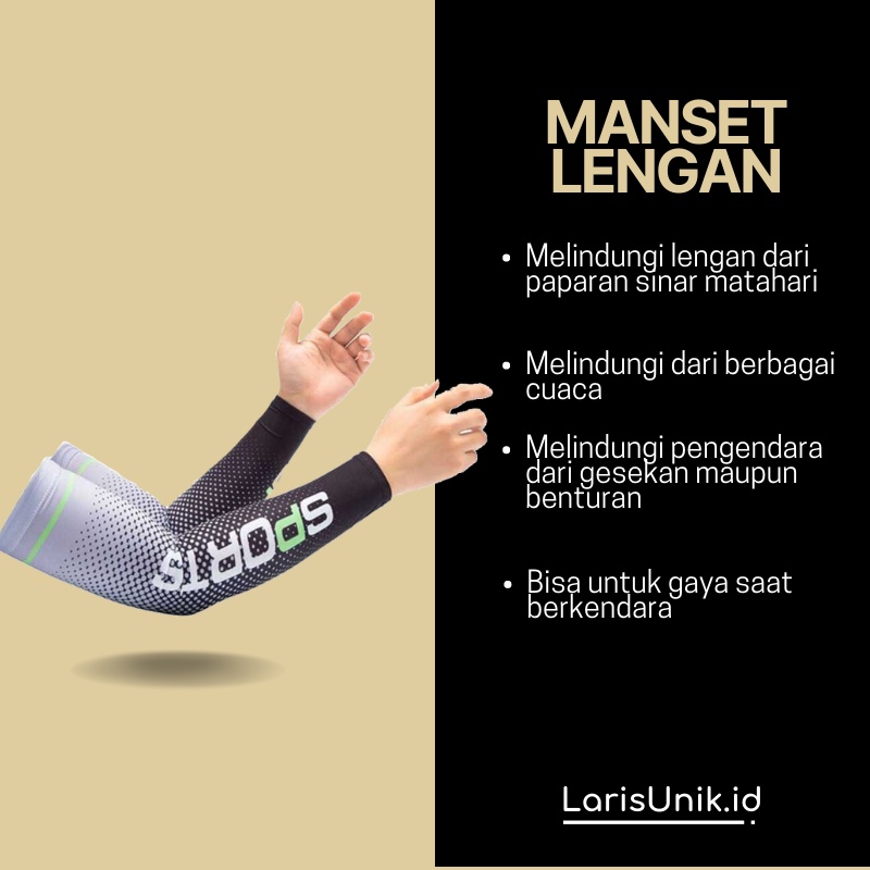 Apa MANFAAT Manset Olahraga Panjang UV Protection ? ✅Melindungi lengan dan siku dari resiko kena cedera dan luka ✅Melindungi dari efek buruk sinar matahari yang menggelapkan kulit ✅Mencegah kulit belang ketika sedang olahraga diluar ruangan ✅Meningkatkan rasa percaya diri
