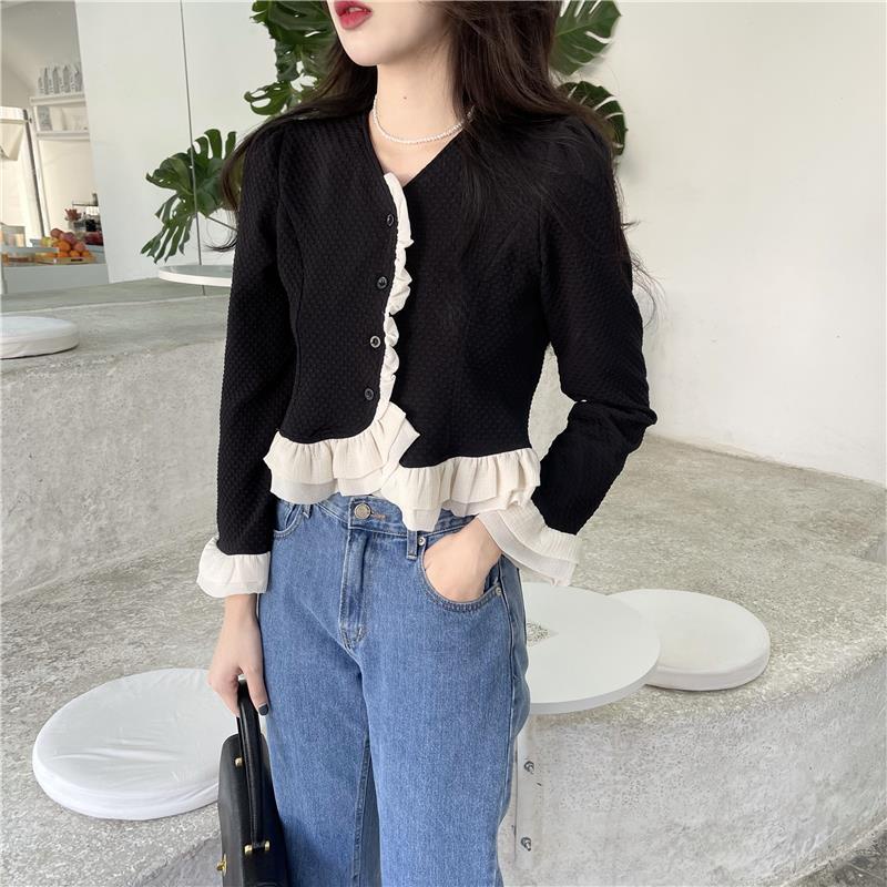 Detail Mantel Atasan Wanita Lengan Panjang Pendek Prancis Baru