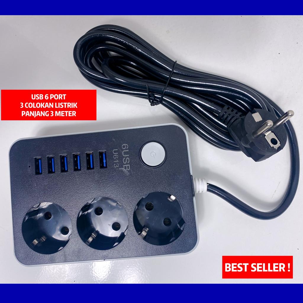 MANTUL Socket Listrik Terminal Stop Kontak 3 Lubang Colokan Listrik + 6 Usb 2A Charging Station 6USB U613MANTUL Socket Listrik Terminal Stop Kontak 3 Lubang Colokan Listrik + 6 Usb 2A Charging Station 6USB U613