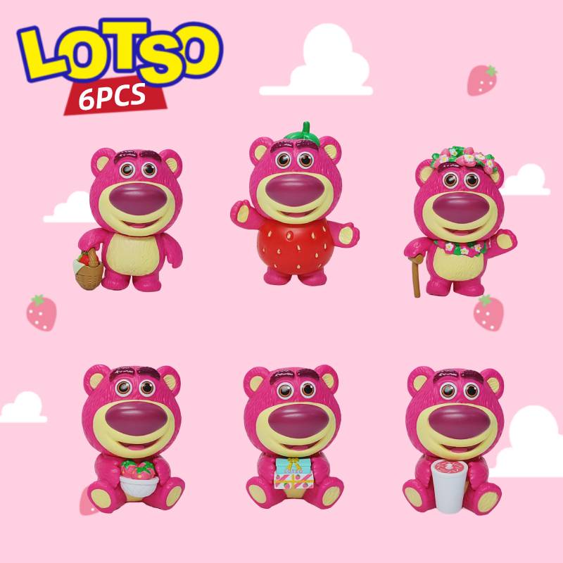 Toy Story3 Strawberry Lotso Bear Doll Figure Model Dekorasi Meja Mainan 6ps Toy Story3 Strawberry Fragrance Lotso Bear Dekorasi Meja Model Mainan